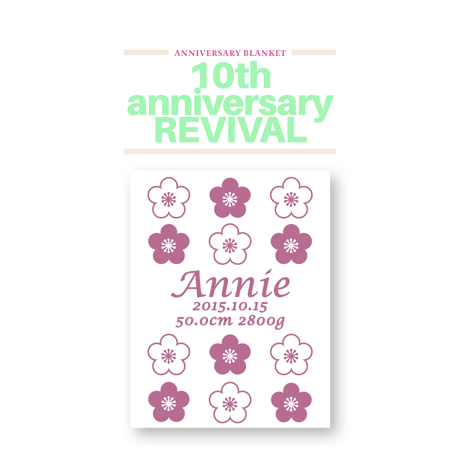 ★オーガニックコットン100%★【送料無料!!ラッピング・メッセージカード無料!!】【出産祝い 名入れ】アニバーサリーブランケットオリジナルお名前入りニットブランケット ウメ(名前+年月日+α)